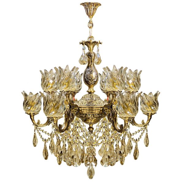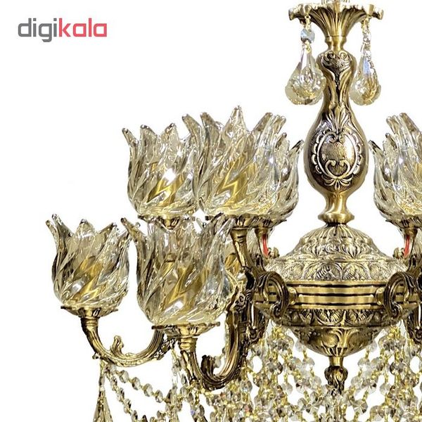 لوستر کد 8854 لوستری با شش بازوی روشنایی است که روی هرکدام دو عدد لامپ با سرپیچهایی از نوع E14 قرار میگیرد. این مدل از جنس برنج ساخته شده و کیفیت و ثبات رنگ بالایی دارد. سر هر شعله یک لالهی زیبای بلورین قرار گرفته است و آویزهای کریستالی جلوهی بسیار زیبایی به آن بخشیدهاند و بازتاب نور جذابی را پدید میآورند. لالهها و کریستالهای این لوستر رنگ شامپاینی دارند. چنین طراحی مجللی میتواند فضای سالن پذیرایی شما را دگرگون کند؛ چرا که لوسترها علاوهبر تولید روشنایی، نقش بسیار مهمی در دکوراسیون دارند. همچنین رنگ نوری که برای لامپها انتخاب میکنید از موارد مهمی هستند که میتوانند فضای شما را به محیطی گرم یا سرد تبدیل کنند. لوستر 12 شعله کد 8854 برای دکور کردن خانههای دارای طراحی کلاسیک انتخاب مناسبی است و با فضاهای مدرن همخوانی کمتری دارد. این لوستر با تمام اجزاء در مجموع 12 کیلوگرم وزن دارد. بهتر است لوازم بلوری و کریستالها بعد از نصب لوستر سر جای خود قرار بگیرند که هم در هنگام نصب وزن کمتری داشته باشد و هم این لوازم حساس آسیبی نبینند.