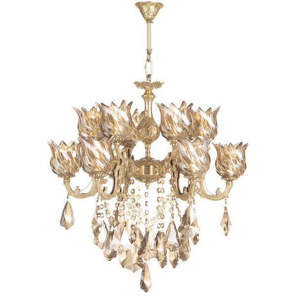 لوستر زیبایی که در تصویر مشاهده میکنید توسط شرکت «شاهان » تولید میشود. « لوستر 12 شعله شاهان تک کد M/6698 » از نوع 12 شعله بوده و نوردهی مناسبی دارد. جنس این لوستر زیبا از برنز میباشد که بسیار با دوام و زیباست . لوستر 12 شعله شاهان تک کد M/6698 دارای 6 شاخه می باشد که هر شاخه آن دارای دو سرپیچ E14 می باشد و استفاده از لامپ های شمعی و اشکی به زیبایی بیشتر این لوستر کمک بسزایی می کند . این لوستر ارتفاعی برابر65 سانتیمتر دارد و کاربر میتواند با کم کردن زنجیرهای آن، این میزان را میتواند کاهش دهد. این لوستر دارای طرح و حکاکی زیبایی بر روی حلقه خود می باشد و همچنین دستک های زیبایی دارد که به شکوه بیشتر این لوستر زیبا کمک میکند از لوستر فوق میتوان در اتاق پذیرایی، آشپزخانه و اتاق خواب استفاده کرد. این محصول با نام « M/6698 » شناخته میشود. این لوستر در عین زیبایی از کیفیت ساخت بالایی برخوردار است.کالای مذکور با اطمینان در زمره با کیفیت ترین و ارزانترین لوستر های برنزی میباشد که برند شاهان جهت رضایت مشتریان آن را طراحی و ارائه کرده است .