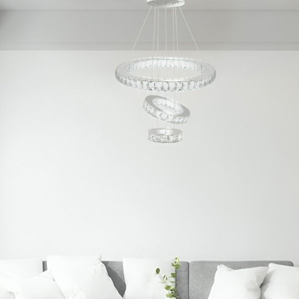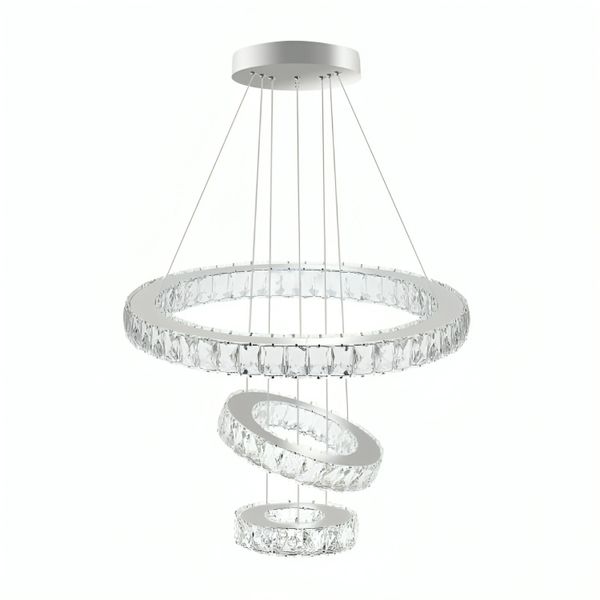 این نوع لوسترها توی بازار معروف به لوستر های SMD می باشد و به صورت حلقه های در هم می باشند . که شاهان لوستر این مدل لوستر را با کدc503015 تولید و به فروش می رساند . c503015 را می توان به سه حالت روشن کرد: حالت اول هر دو حلقه به صورت نور مهتابی یا همون سفید باشد .حالت دوم : هر دو حلقه به صورت نور آفتابی یا زرد باشد و حالت سوم: هر دو حلقه به صورت نور شب خواب ( نور مهتابی ملایم ) باشند. و با استفاده از ریموت ( کنترل ) محصول میتوان از شدت نور کم کرد یا به آن افزوده . و همچنین میتوانید با کم و زیاد کردن ارتفاع حلقه ها به هر آرایشی که میخواهید لوستر را تزیین نمایید ( به حالت های منظم و یا نا منظم) و بیشترین ارتفاع آن 65 سانتی متر و کمترین ارتفاع آن 25 سانتی متر می باشد. این نوع لوستر های ساخته شده از روی نمونه مشابه خارجی می باشد ولی با متریال با کیفیت ایرانی و هزینه ی کمتر از نمونه های خارجی. شاهان لوستر مفتخر است که لوستر c503015 با بالا ترین سطح کیفیت تولید و عرضه میکند .شما میتوانید از نوع لوستر ها در سالن های پذیرایی اتاق خواب آشپزخانه و یا حتی محیط های اداری و کافه ها استفاده نمایید . چراغ آویز شاهان کد c503015 دارای سه حلقه با قطرهای 50 و 30و 15سانتی متر می باشد .